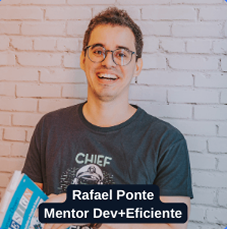 Os mentores Dev + Eficiente estão atuando no mercado e em empresas muito relevantes. Essa é uma combinação que você dificilmente encontra em qualquer outro treinamento. Eles estão constantemente estudando e tentando estressar os limites de como entregar código com qualidade e ainda tem a oportunidade de confrontar e testar diretamente no mercado, em desafios de larga escala.